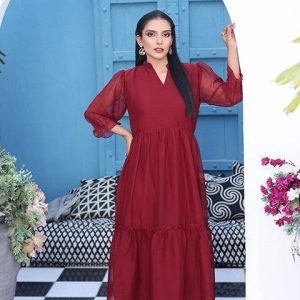 Alnoor Flary Long Maroon Frock (FR-614N)