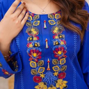Alnoor Stylish Women’s Embroidered Linen Shirt And Trouser Set – 2 Pcs