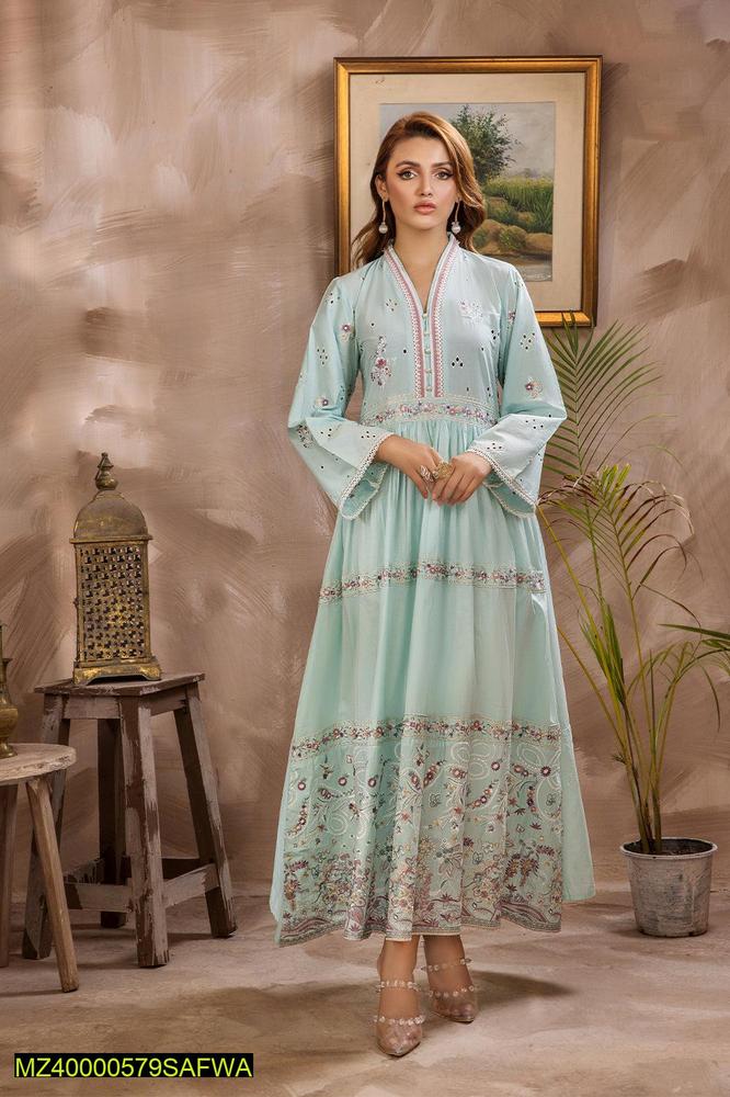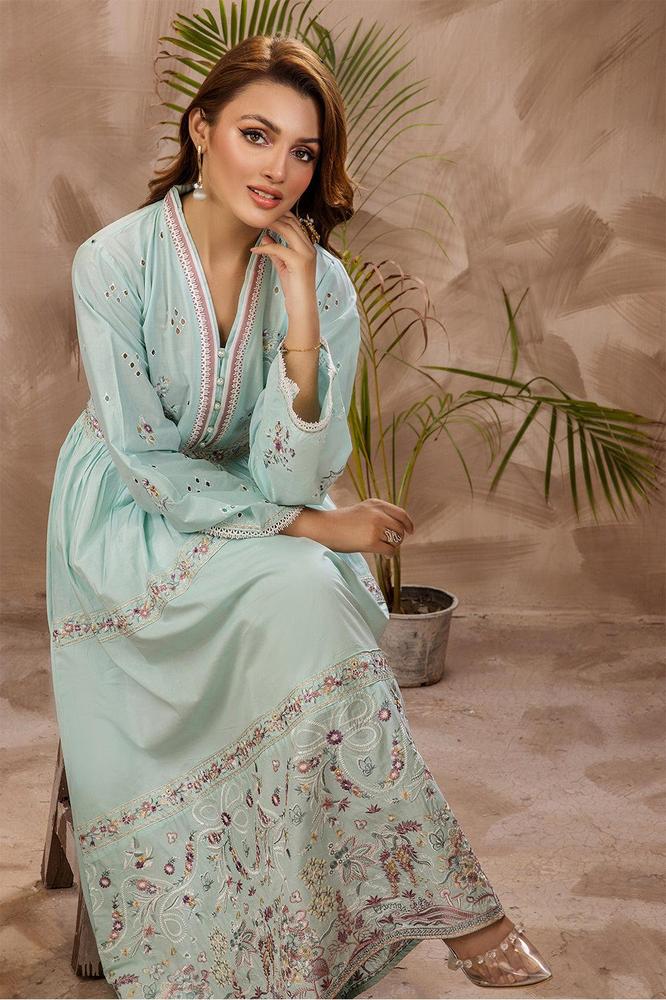 The Alnoor – 2 Pcs Embroidered Lawn Pret Suit from the ready-to-wear collection offers a perfect combination of comfort and sophistication. The shirt features exquisite embroidery, while the plain trouser adds a polished touch to the overall look. Made from breathable Lawn fabric, this suit ensures both comfort and style, making it suitable for various occasions.